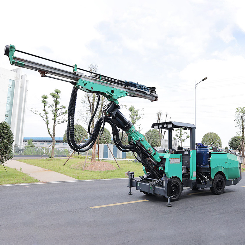 The DD1 mining hydraulic tunneling rig is a mini rock drilling machine specifically designed for narrow roadways, suitable for 2x2-3.5x3.5m roadways. The machine has a compact size (9.4m long x 1.25m wide x 1.84m high), a turning radius of only 2.81m, and features a four-wheel drive articulated chassis, diesel power, and high-efficiency fully hydraulic rock drilling. It is equipped with an electronic control system, with optional remote control operation, and includes a seat and canopy (allowing for seated operation when roadway height permits). It is suitable for blasting operations in small roadways in underground mines, hydroelectric power stations, and other similar locations.